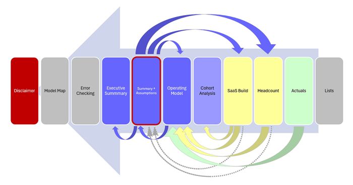 With this layout (Summary & Assumptions side-by-side), you immediately see the impact of every input you change. I find this is really helpful for stress-testing the model.